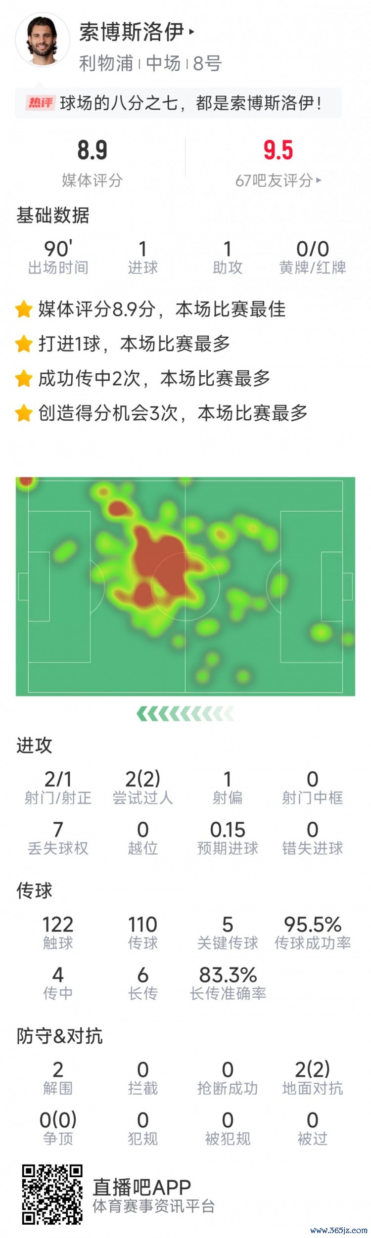 此役索博斯洛伊为利物浦踢满全场,并贡献传射,苏超直播利物浦官方宣布,他当选本场赛事 利物浦队内最佳球员。